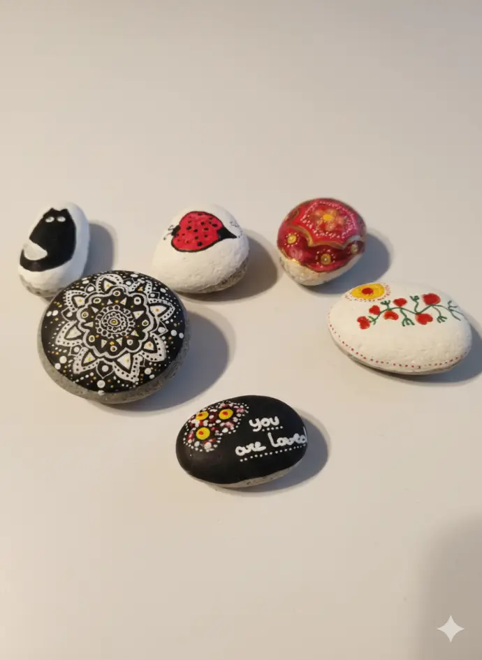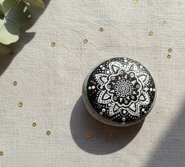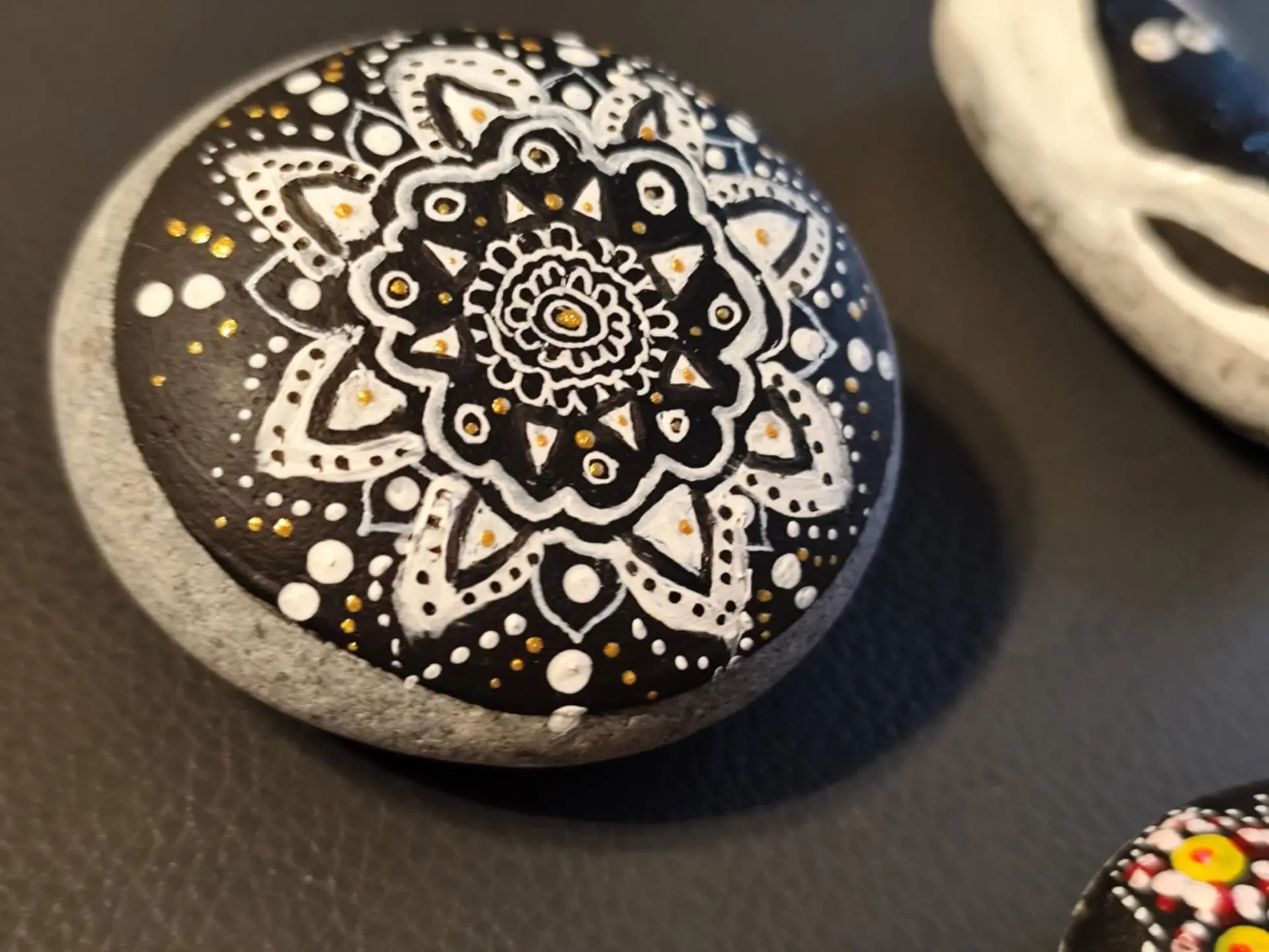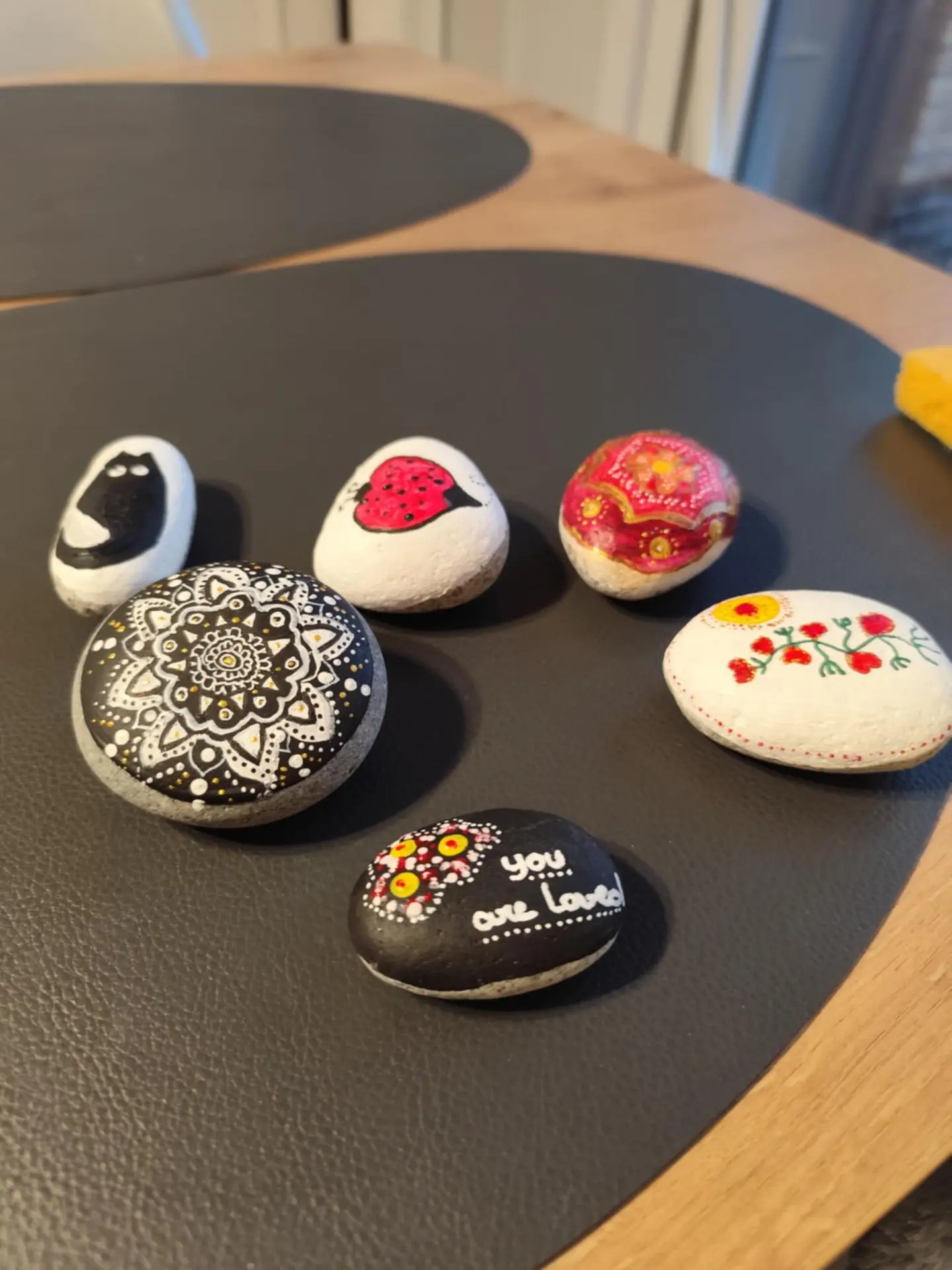 Je krijgt vier stenen mee, die al voorzien zijn van een grondlaag in wit of zwart – klaar om versierd te worden!